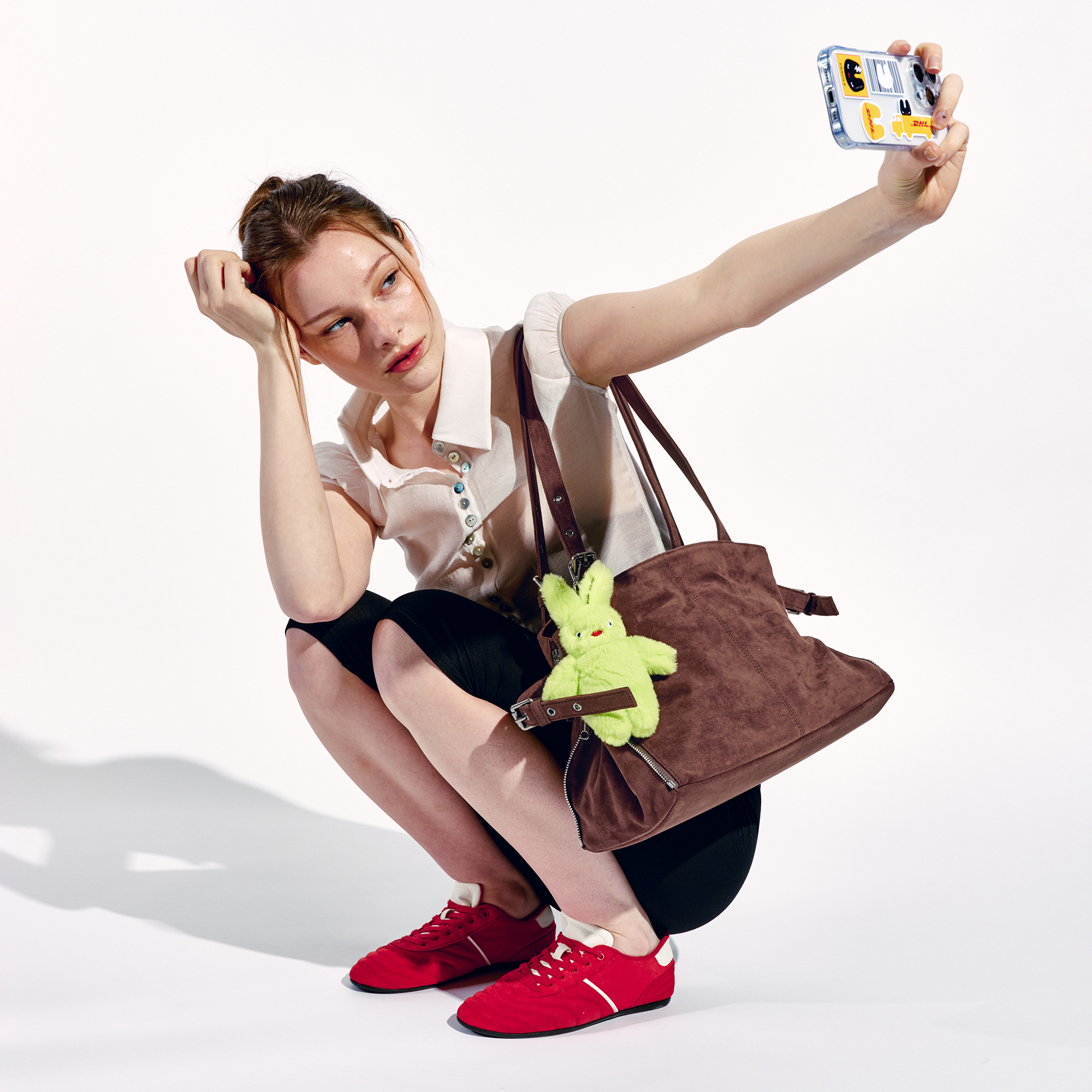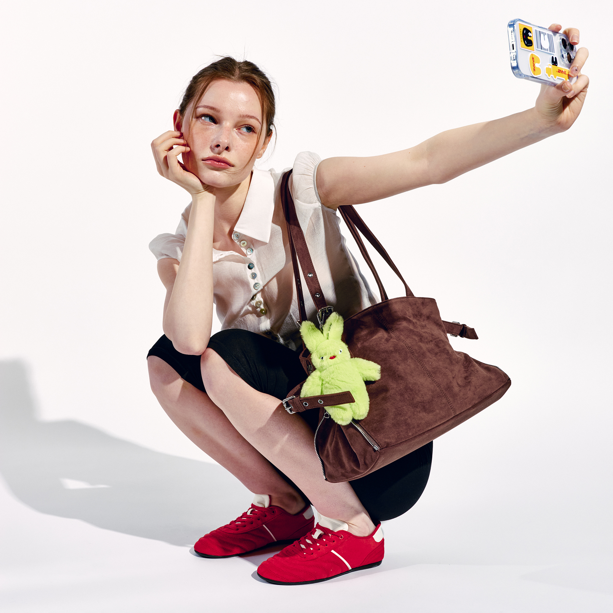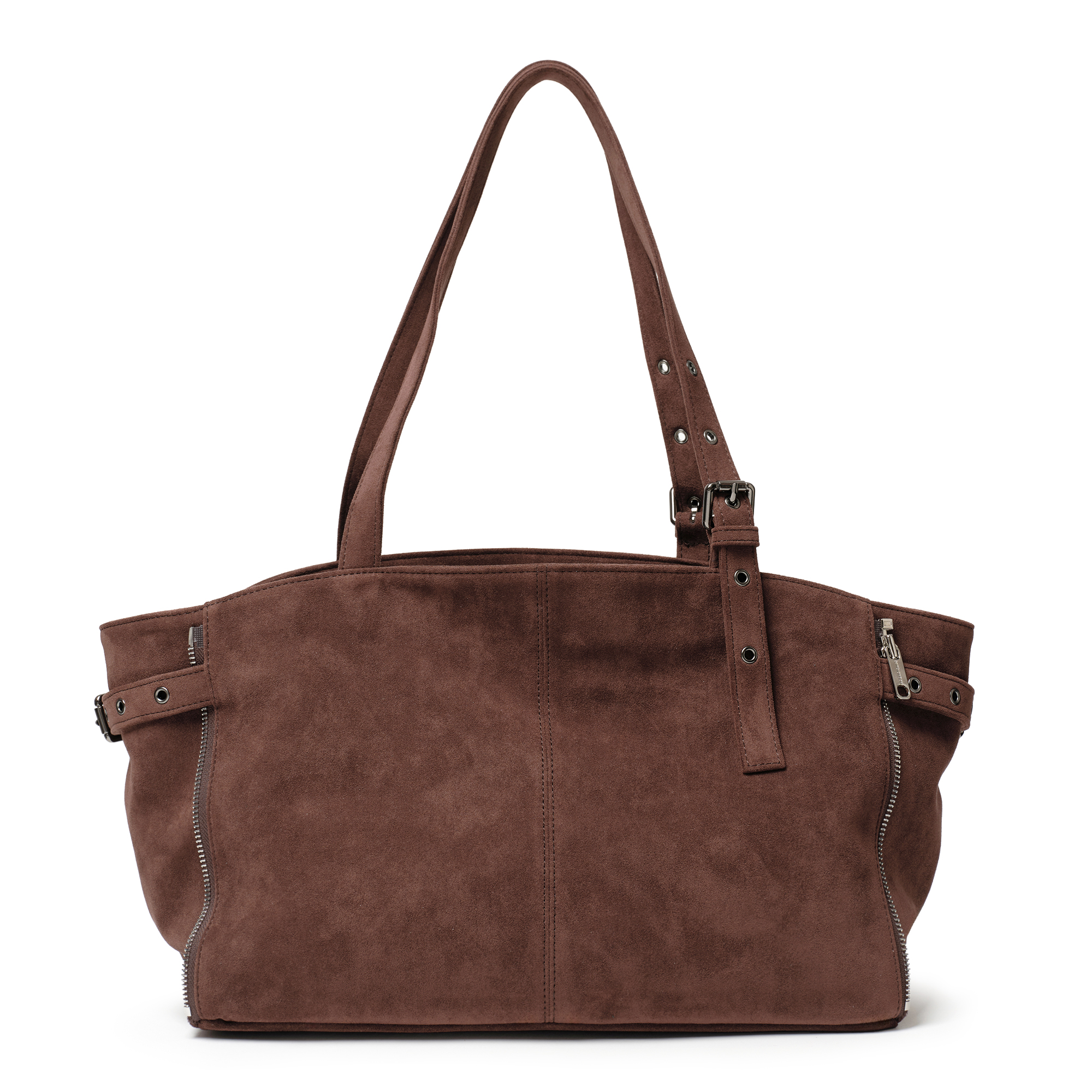 사이드 지퍼를 중간까지 닫으면 형태와 사이즈가 변하는 투웨이 쇼퍼백