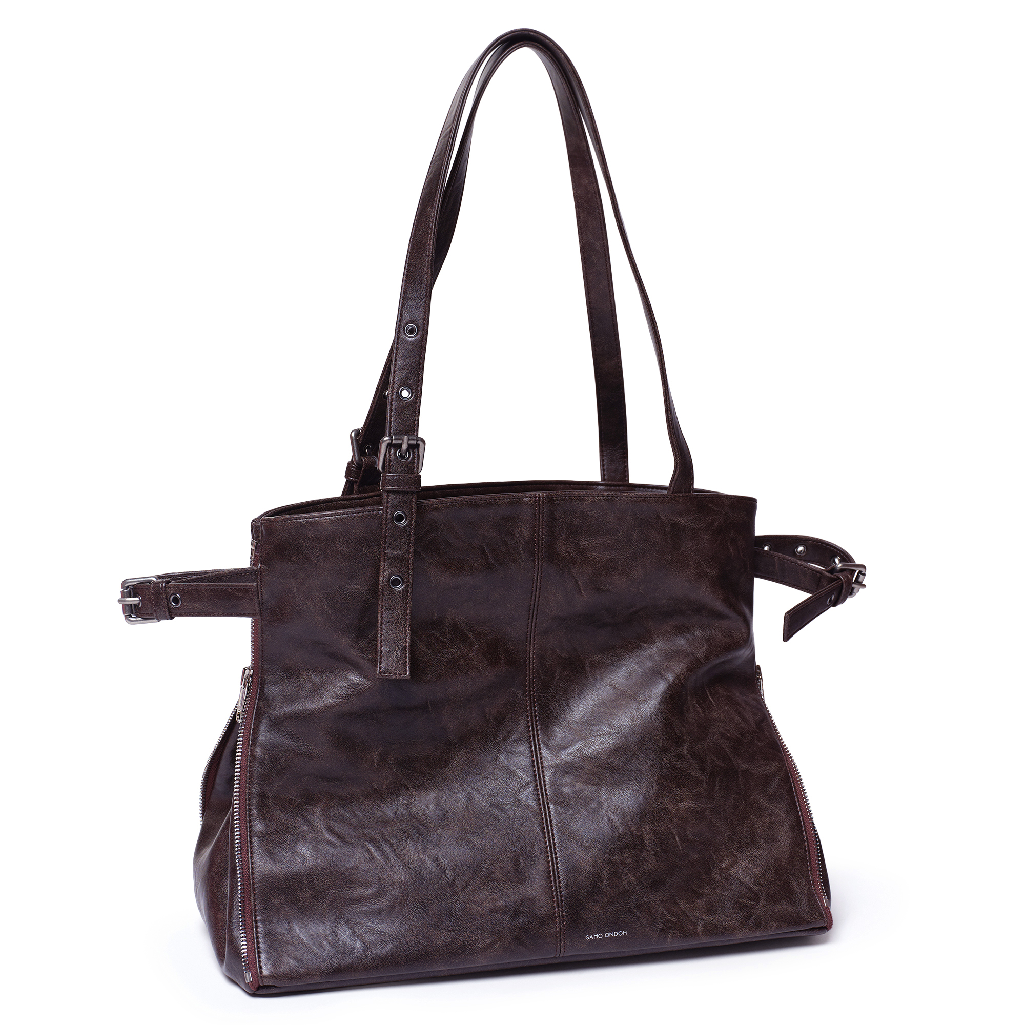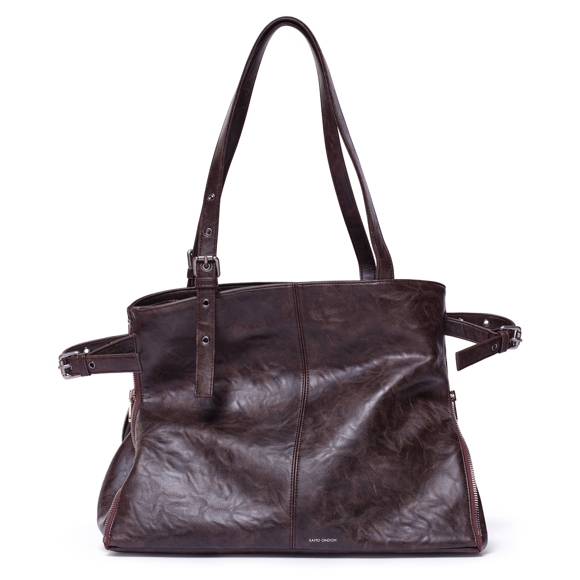 ✔️사이드 지퍼를 중간까지 조절해 실루엣을 변형할 수 있는 투웨이 쇼퍼백