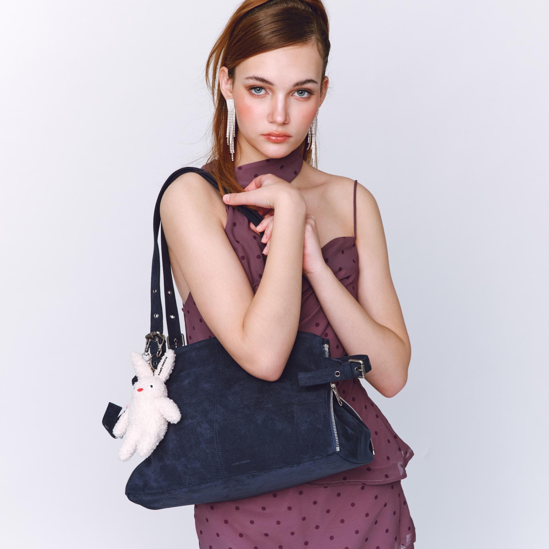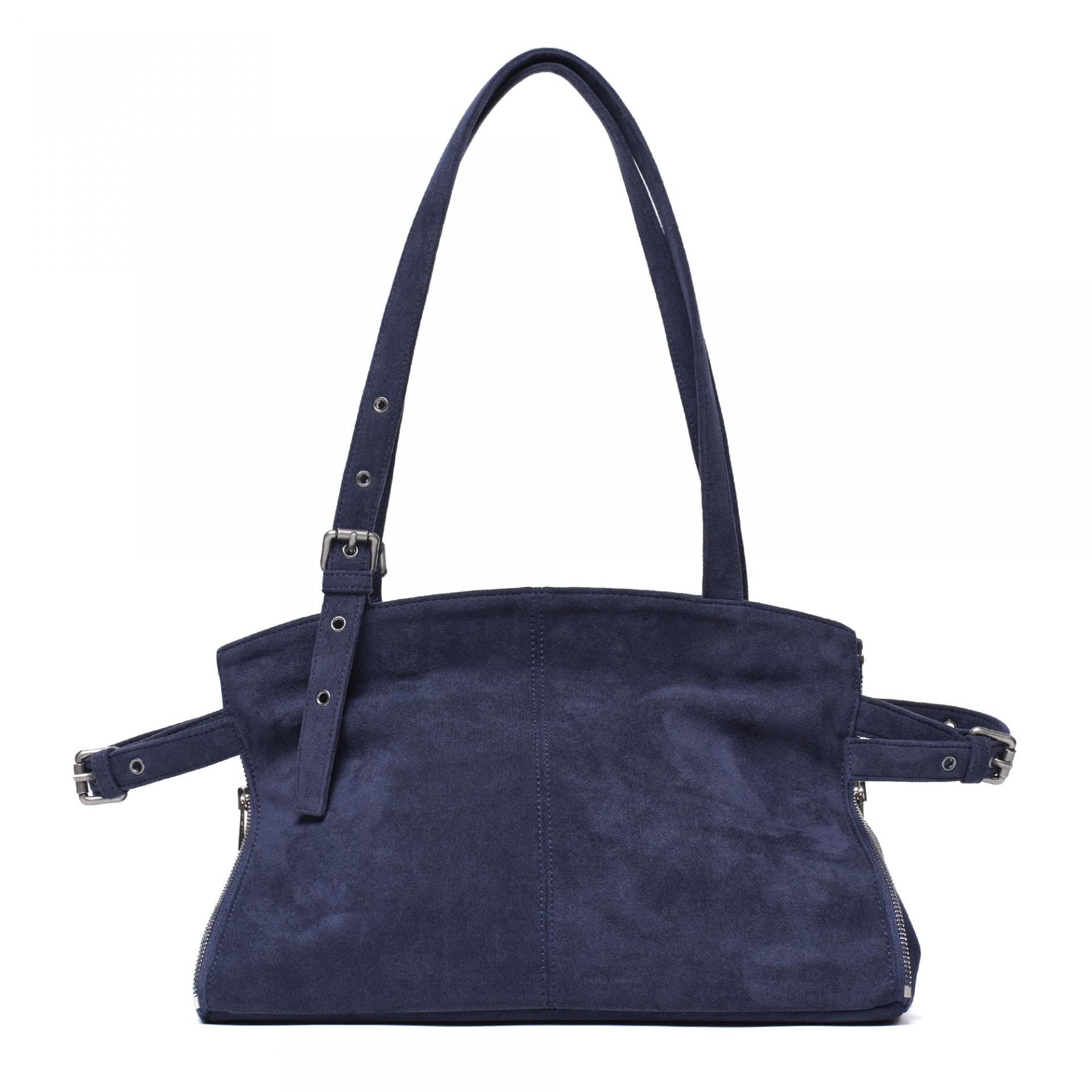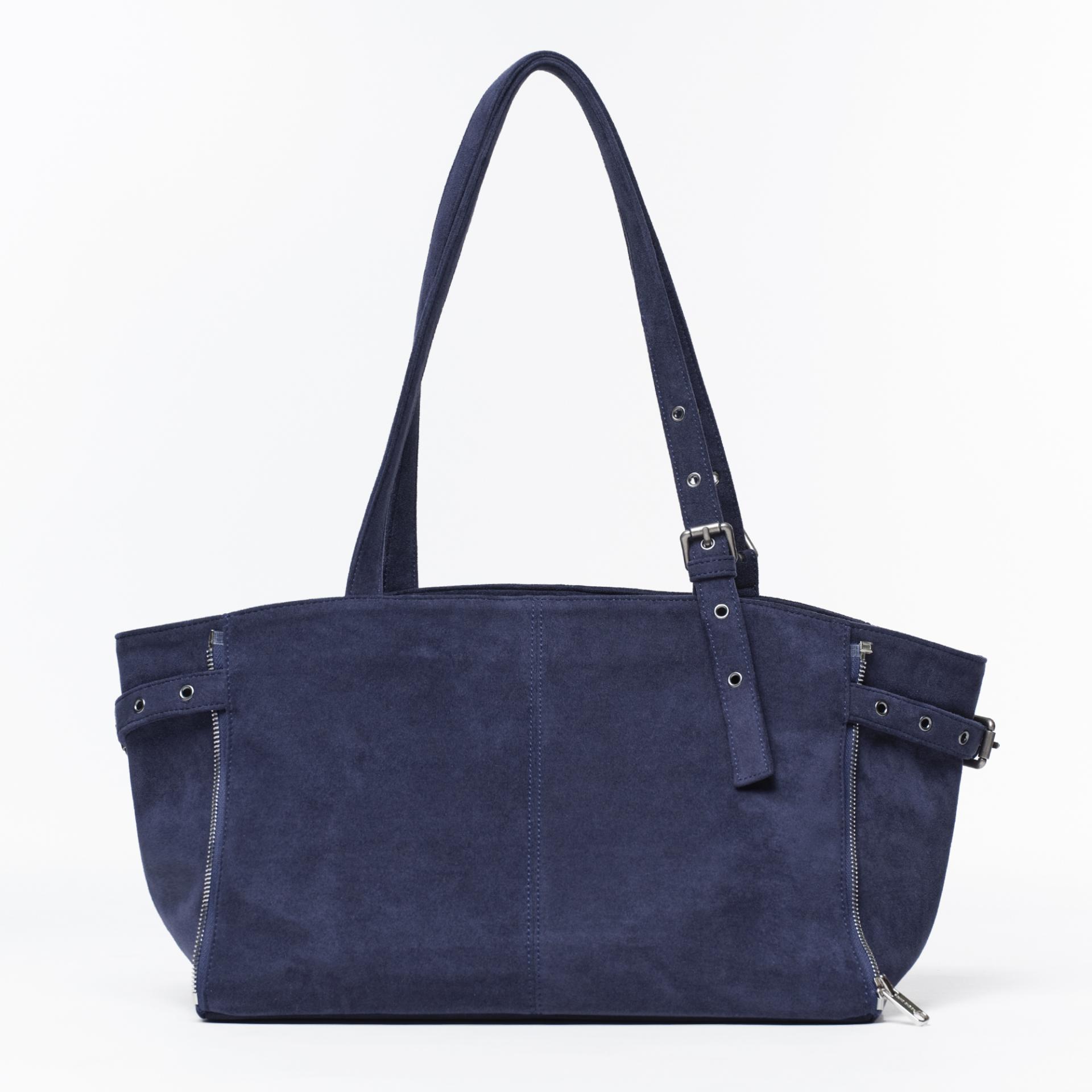 사이드 지퍼를 중간까지 닫으면 형태와 사이즈가 변하는 투웨이 쇼퍼백